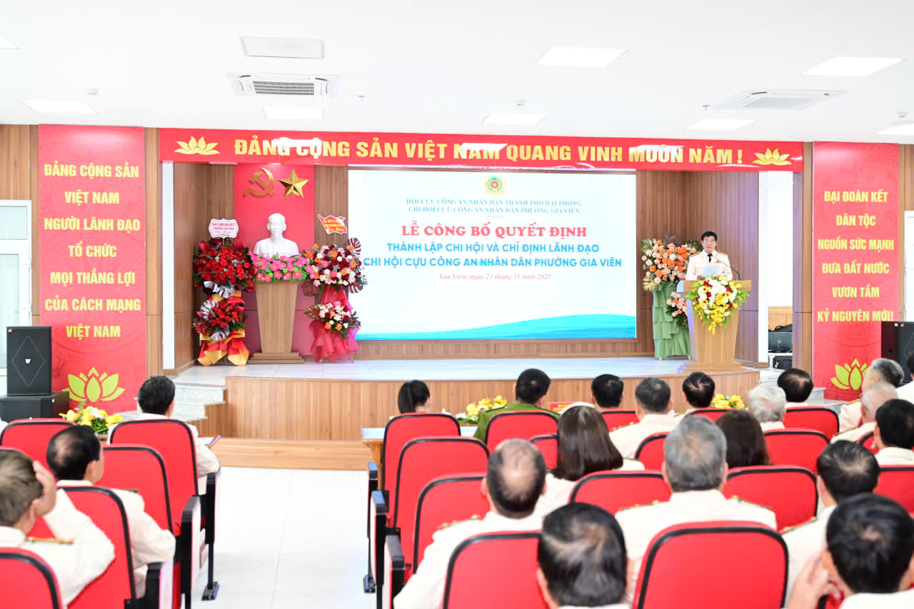 Thực hiện Công văn số 331/CAHP-PX01 ngày 17/7/2025 về việc phối hợp Hội cựu Công an nhân dân (CAND) các cấp thực hiện sắp xếp tổ chức Hội và công tác nhân sự lãnh đạo Hội các cấp. Sáng ngày 23/11/2025, Ủy ban nhân dân phường tổ chức Lễ công bố Quyết định thành lập Chi hội và chỉ định Lãnh đạo Chi hội cựu Công an nhân dân phường Gia Viên.