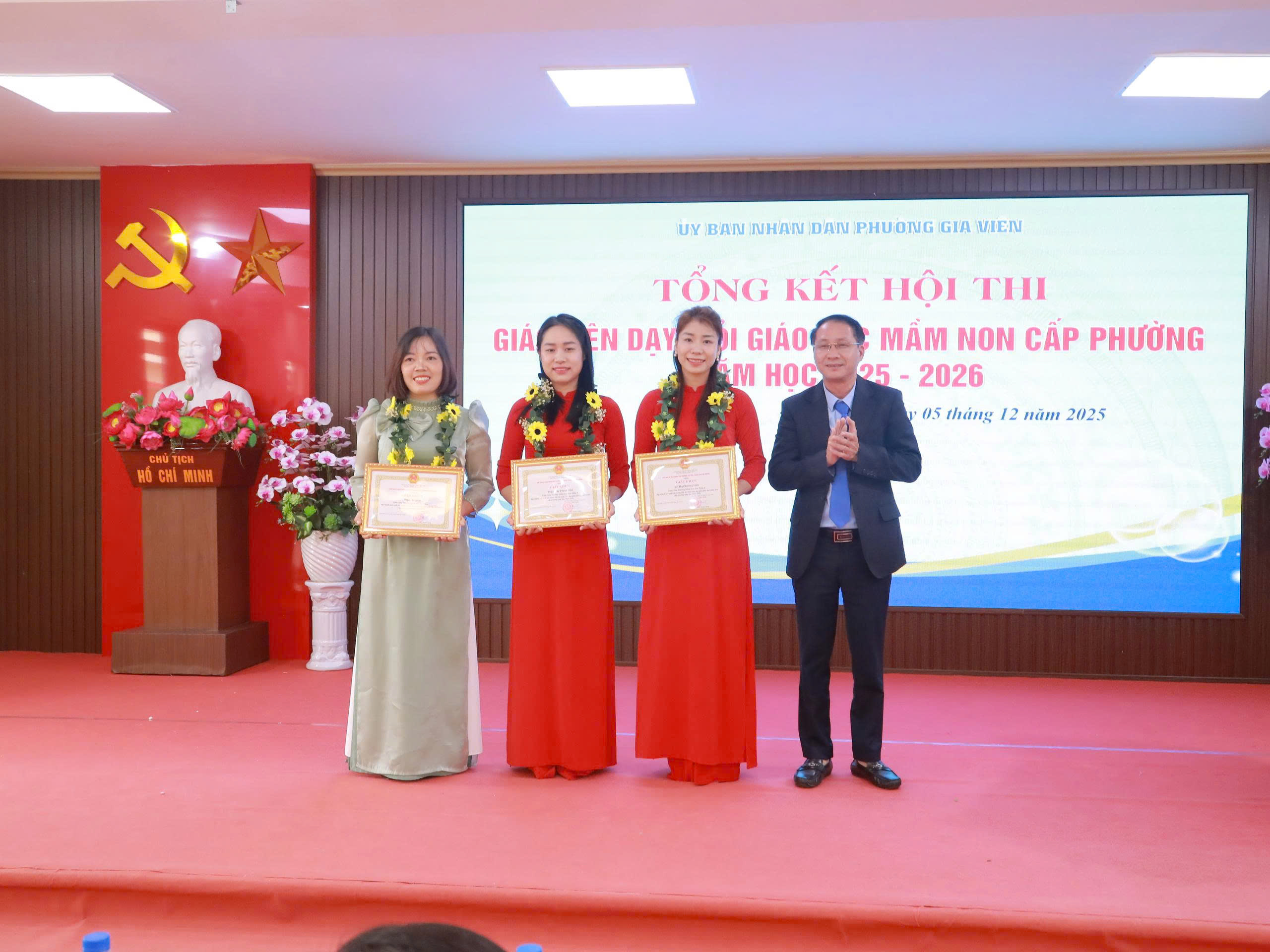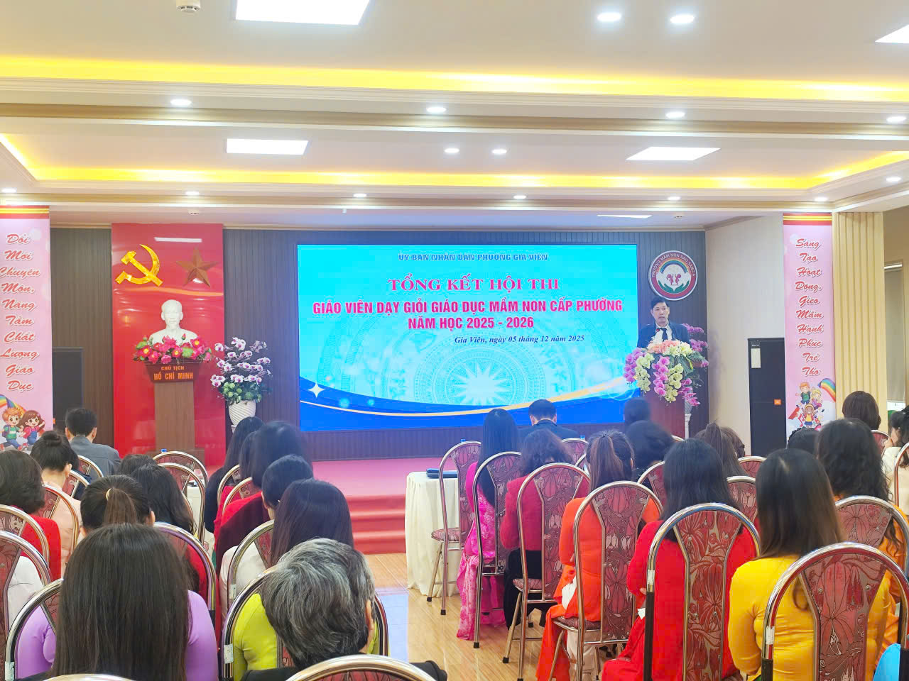 Thực hiện Kế hoạch số 61/KH-UBND ngày 22/9/2025 của UBND phường về việc tổ chức Hội thi giáo viên dạy giỏi giáo dục mầm non cấp phường năm học 2025-2026. Sáng ngày 05/12/2025, UBND phường Gia Viên tổ chức Hội nghị Tổng kết hội thi giáo viên dạy giỏi giáo dục mầm non cấp phường năm học 2025-2026.