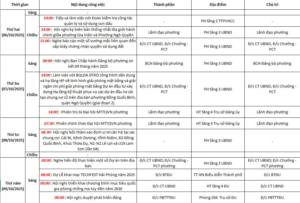 Lịch công tác tuần 41 (từ 06/10/2025 đến 12/10/2025)