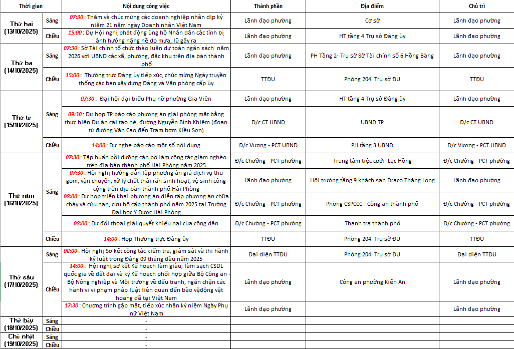 Lịch công tác tuần 42 (từ 13/10/2025 đến 19/10/2025)