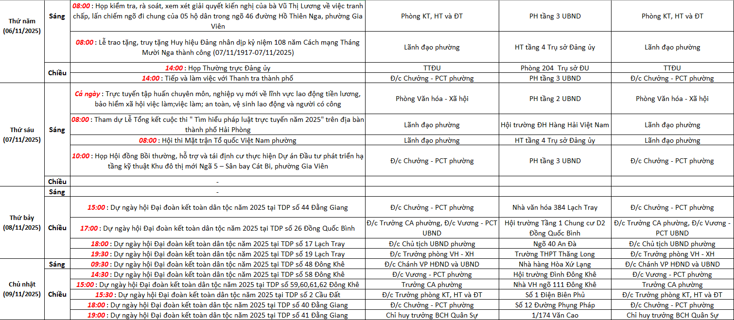 Lịch công tác tuần 45 (từ 03/11/2025 đến 09/11/2025)