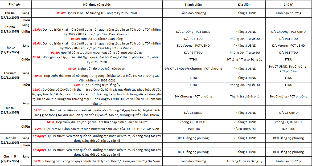 Lịch công tác tuần 47 (từ 17/11/2025 đến 23/11/2025)