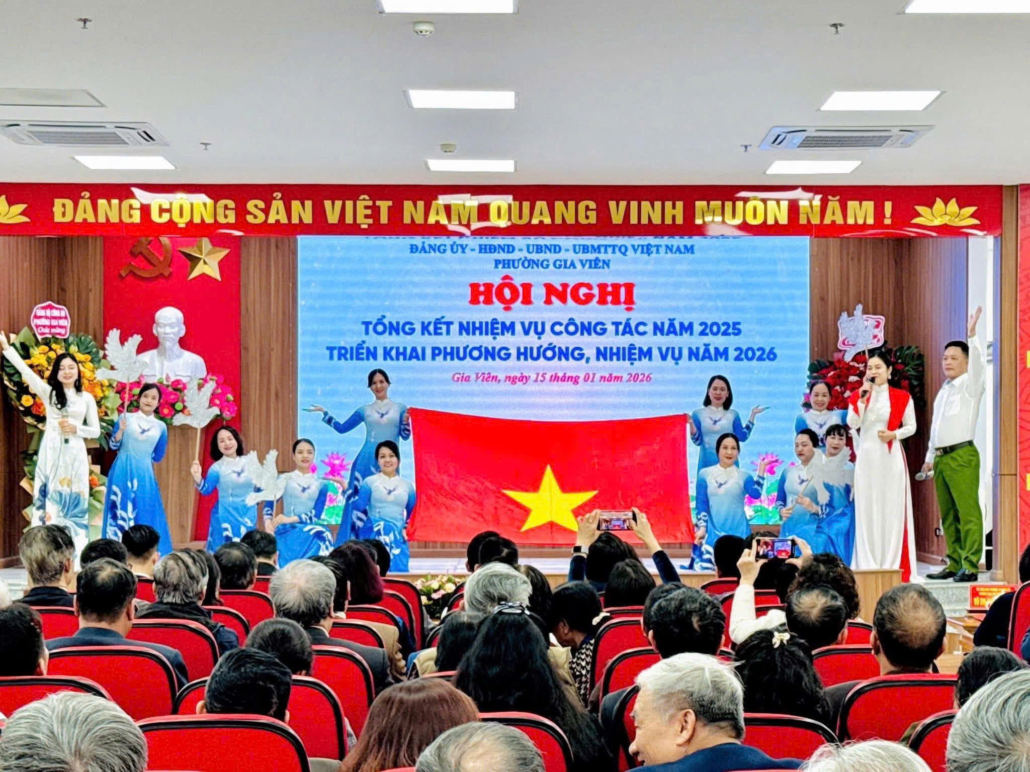 🗓️ Sáng 15/01/2026, phường Gia Viên long trọng tổ chức Hội nghị Tổng kết công tác Đảng, công tác kiểm tra, giám sát, công tác chính quyền; biểu dương, khen thưởng các tập thể, cá nhân tiêu biểu năm 2025; tổng kết và trao giải Cuộc thi tìm hiểu Nghị quyết; đồng thời giao dự toán, ký kết giao ước thi đua năm 2026
