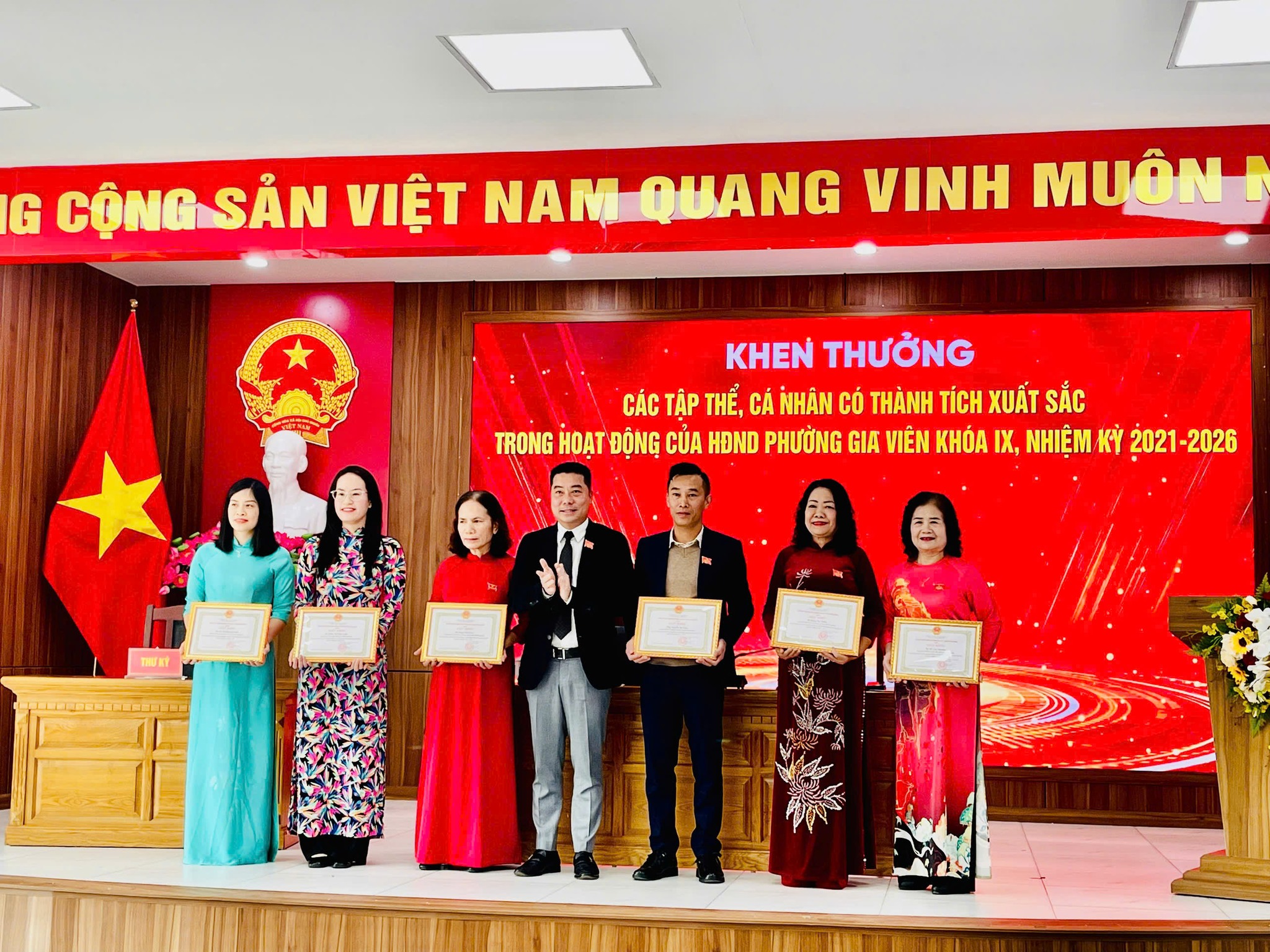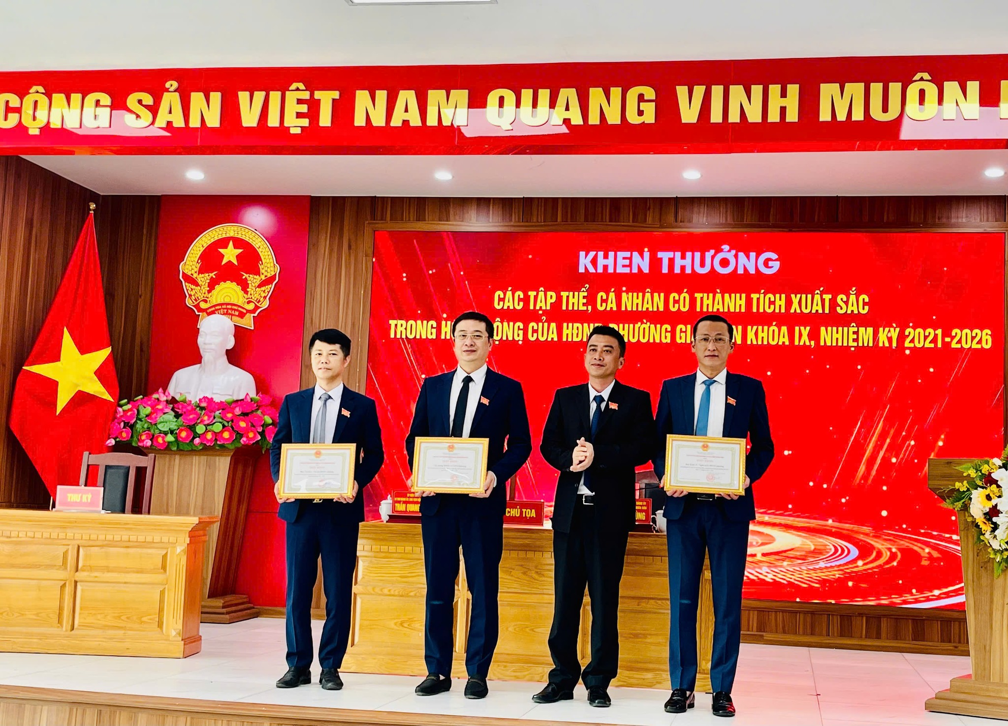 Tại Kỳ họp, HĐND phường cũng đã tổng kết hoạt động HĐND phường khóa IX, nhiệm kỳ 2021-2026; biểu dương, khen thưởng 03 tập thể và 15 cá nhân có thành tích tiêu biểu, xuất sắc trong nhiệm kỳ 2021-2026.