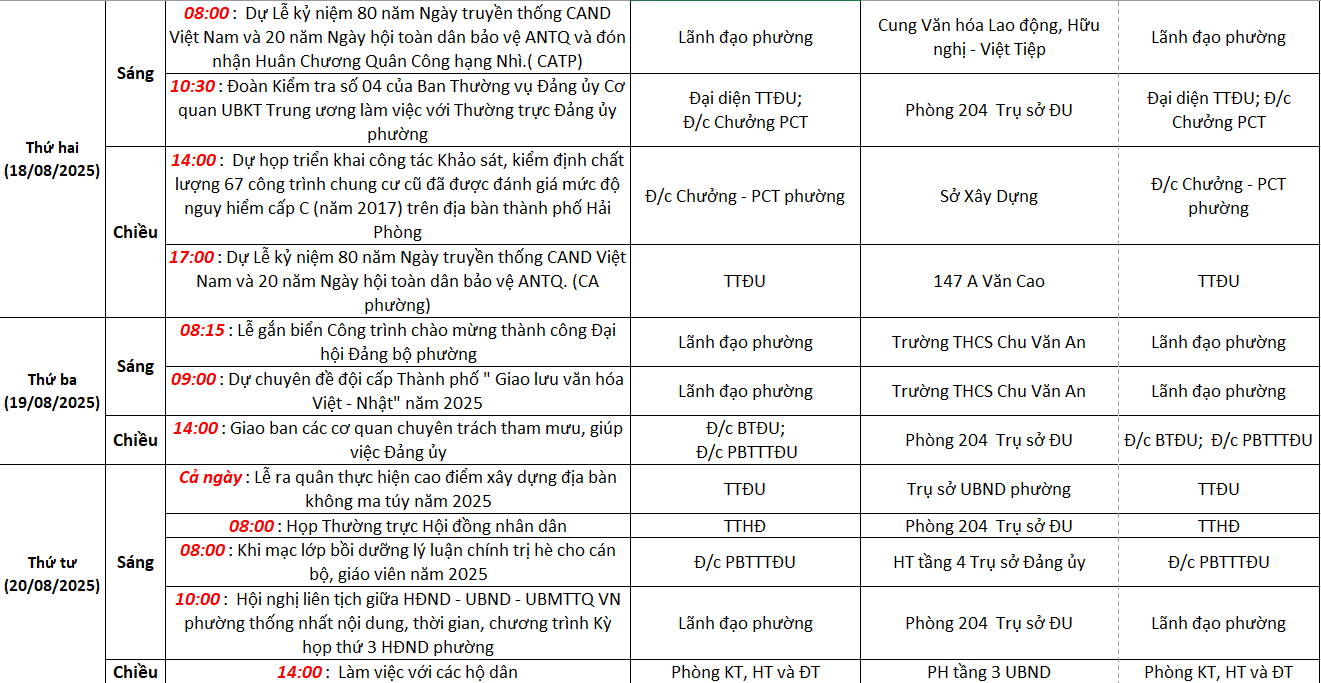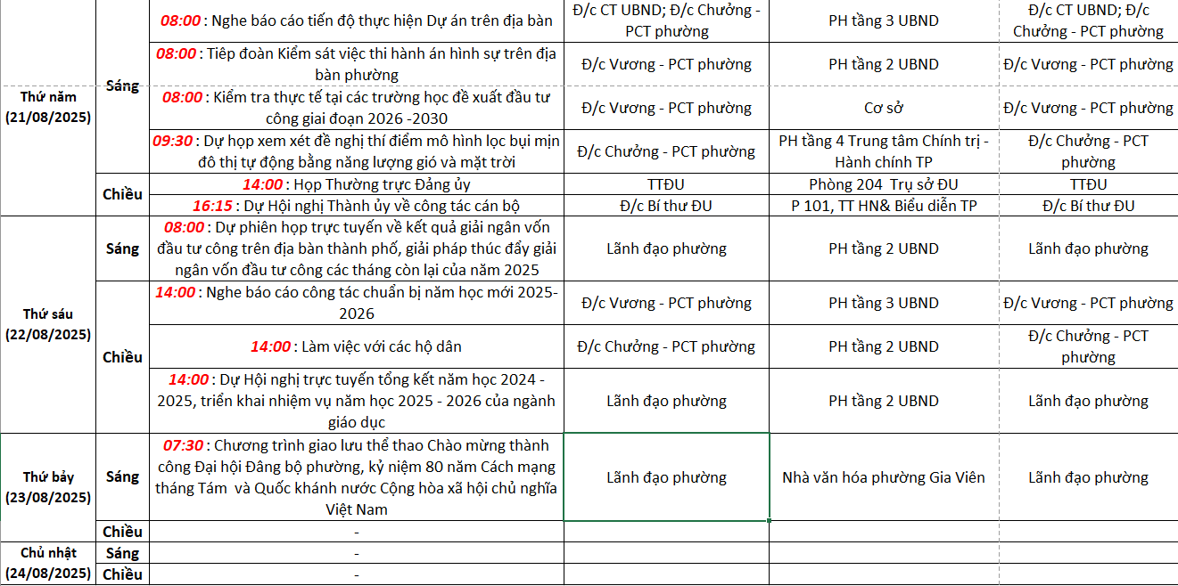 Lịch công tác tuần 34 (từ 18/08/2025 đến 24/08/2025)