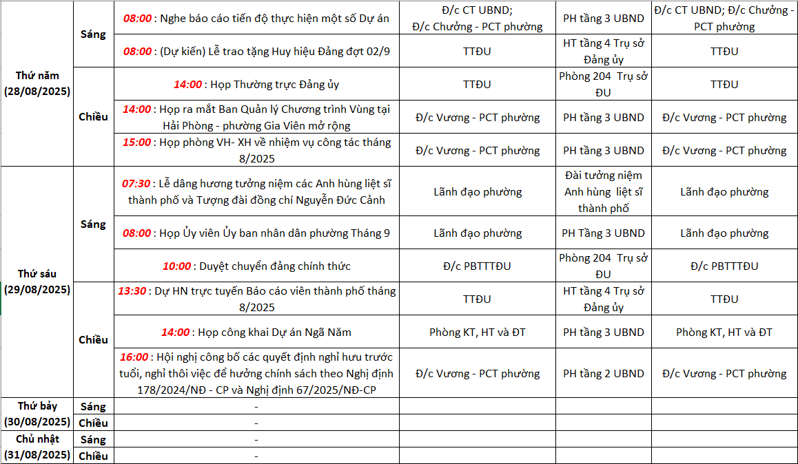 Lịch công tác tuần 35 (từ 25/08/2025 đến 31/08/2025)