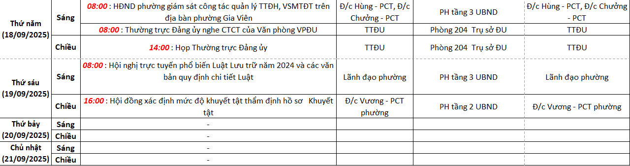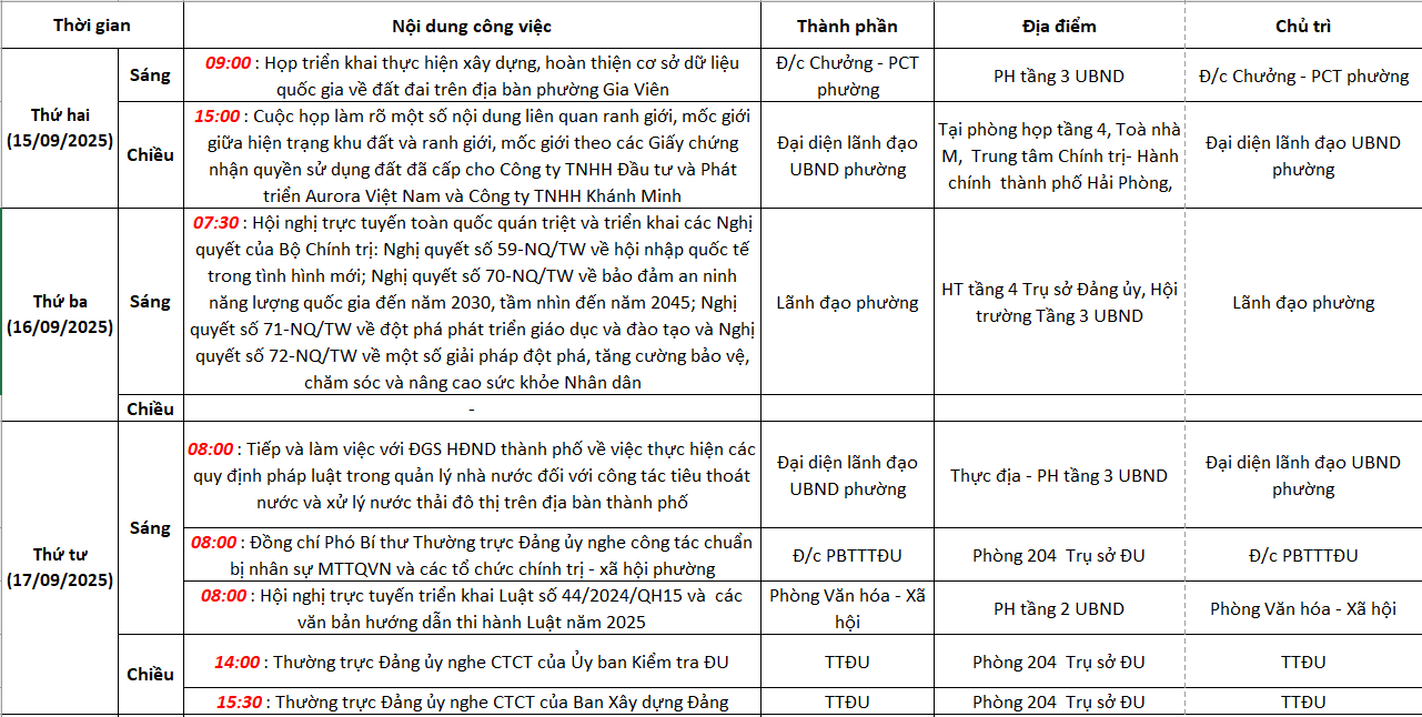 Lịch công tác tuần 38 (từ 15/09/2025 đến 21/09/2025)