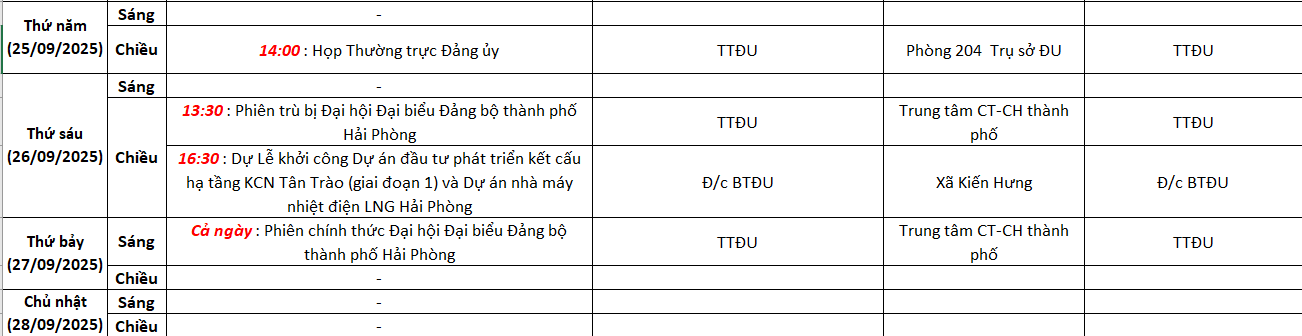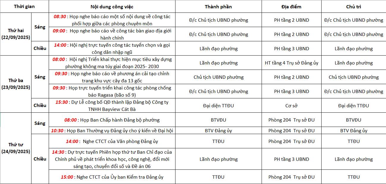 Lịch công tác tuần 39 (từ 22/09/2025 đến 28/09/2025)