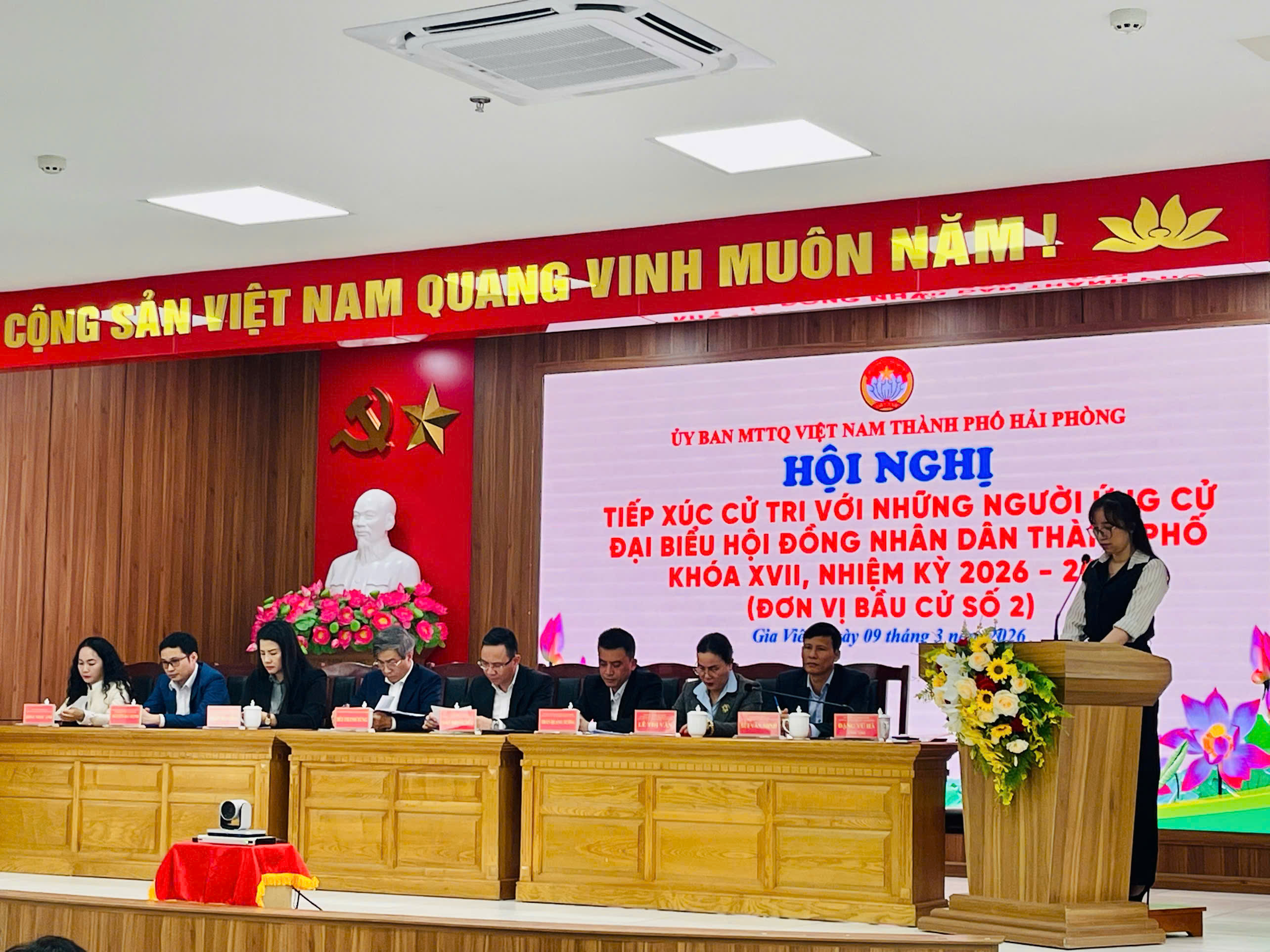 Chiều ngày 09/3/2026, Phường Gia Viên tổ chức Hội nghị tiếp xúc cử tri đối với người ứng cử đại biểu Hội đồng nhân dân thành phố khóa XVII, nhiệm kỳ 2026 – 2031 tại Đơn vị bầu cử số 2.